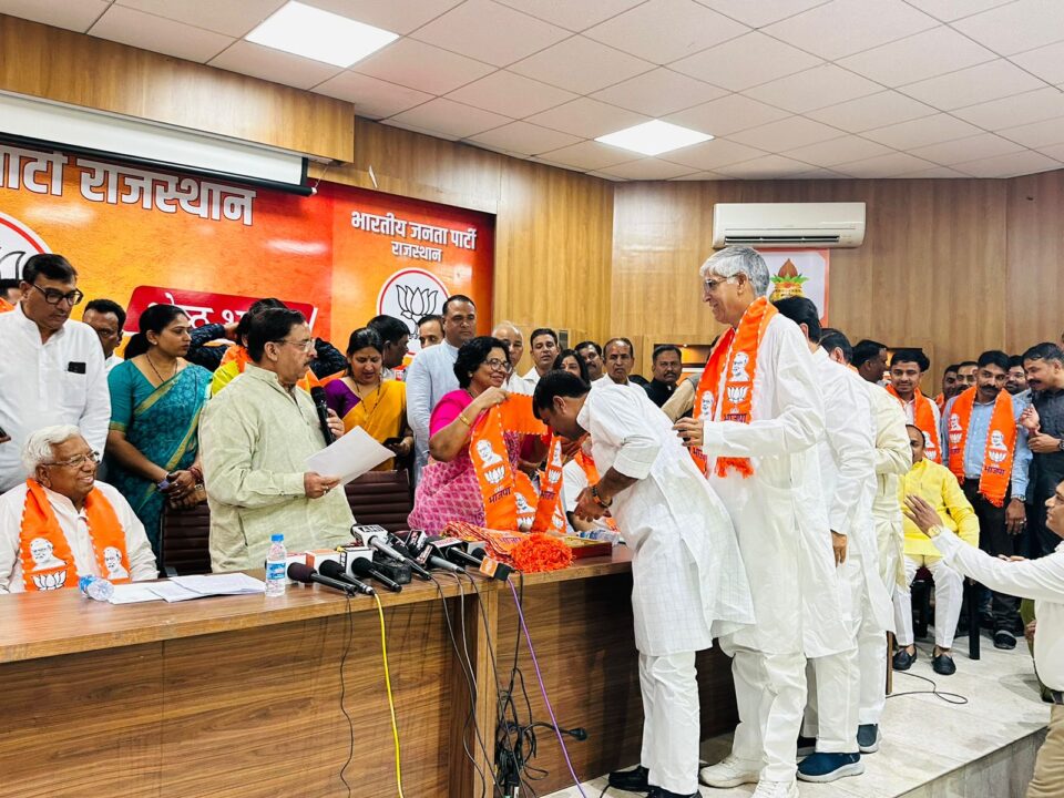 रिपोर्ट टाइम्स, चिड़ावा। पिलानी विधानसभा क्षेत्र के पूर्व विधायक जेपी चंदेलिया आज भाजपा में शामिल हो गए। भाजपा मुख्यालय में पूर्व प्रदेशाध्यक्ष अरुण चतुर्वेदी सहित भाजपा के वरिष्ठ नेताओं की मौजूदगी में चंदेलिया को दुपट्टा ओढ़ाकर पार्टी की सदस्यता दिलाई गई। वहीं विधानसभा चुनावों में पार्टी प्रत्याशी के खिलाफ चुनाव लड़ने वाले पूर्व प्रधान कैलाश मेघवाल और उनके साथ पार्टी के खिलाफ प्रचार करने वाले पूर्व भाजपा जिलाध्यक्ष सुभाष शर्मा, रामगोपाल मिश्रा, पार्षद रजनीकांत मान, पिलानी प्रधान बिरमा देवी, पूर्व पार्षद सुरेश जलिंद्रा, युवा नेता महेंद्र मोदी सहित बड़ी संख्या में पिलानी विधानसभा के काफी कार्यकर्ताओं ने भाजपा ज्वाइन की।