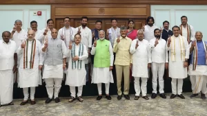 पीएम हाउस में हुई एनडीए की बैठक में जो प्रस्ताव पारित हुआ उसमें लिखा है कि- ‘भारत के 140 करोड़ देशवासियों ने 10 साल में पीएम नरेंद्र मोदी की नीतियों से देश को विकसित होते देखा है. 6 दशक बाद भारत की जनता ने तीसरी बार पूर्ण बहुमत की सरकार चुनी है. हम सभी सर्वसम्मति से पीएम मोदी को अपना नेता चुनते हैं. मोदी की लीडरशिप में एनडीए सरकार भारत के गरीब महिला युवा किसान, शोषित वंचितों की सेवा करने के लिए प्रतिबद्ध है. एनडीए सरकार भारत के जनजन के जीवन स्तर में सुधार लाने का काम करती रहेगी.