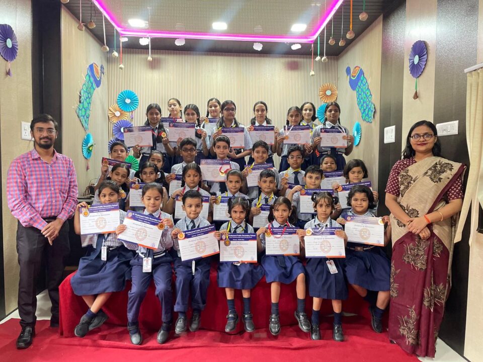 वहीं कक्षा 3 से दक्ष ने प्रथम, हिमांशी ने द्वितीय व विनीता ने तृतीय, कक्षा 4 से दृष्टि ने प्रथम, काव्या, खुशहाल एवं तेजल ने द्वितीय व आराध्या ने तृतीय स्थान प्राप्त किया। कक्षा 5 से अदिति ने प्रथम, दीक्षा ने द्वितीय व अमोघ व अंशिका ने तृतीय, कक्षा 6 से अविदित ने प्रथम, पार्थ ने द्वितीय व कनक ने तृतीय स्थान प्राप्त किया।कक्षा 7 से नव्या ने प्रथम, अमृता ने द्वितीय व रिया ने तृतीय स्थान प्राप्त किया। कक्षा 9 से हर्षिता, हर्षवी व रूत्वी ने प्रथम, भाविका ने द्वितीय व तन्वी ने तृतीय स्थान प्राप्त किया। संस्था निदेशक अनिल गुप्ता ने प्रतियोगिताओं में स्थान प्राप्त करने वाले विद्यार्थियों को मेडल पहनाकर व सर्टिफिकेट देकर सम्मानित किया । प्रधानाचार्या स्वाति गुप्ता व समस्त स्टाफ ने विद्यार्थियों के उज्जवल भविष्य की कामना की ।