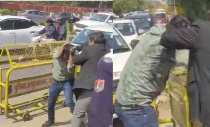 राजस्थान की राजधानी जयपुर में हाईकोर्ट के बाहर बीच सड़क ड्राइवर की पिटाई का मामला आया है। बताया जा रहा है कि सरकारी वाहन से एक गाड़ी को हल्की टक्कर लग गई। इसके बाद सरकारी वाहन के ड्राइवर को बीच सड़क जमकर पीटा गया। ड्राइवर की पिटाई करने का आरोप दो वकीलों पर है, इस मामले में अशोक नगर पुलिस थाने में मुकदमा दर्ज करवाया गया है।